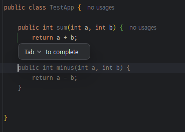- Alt + G를 클릭하면 나의 코드 컨텍스트를 분석하여 코드 자동 완성을 제공해준다.