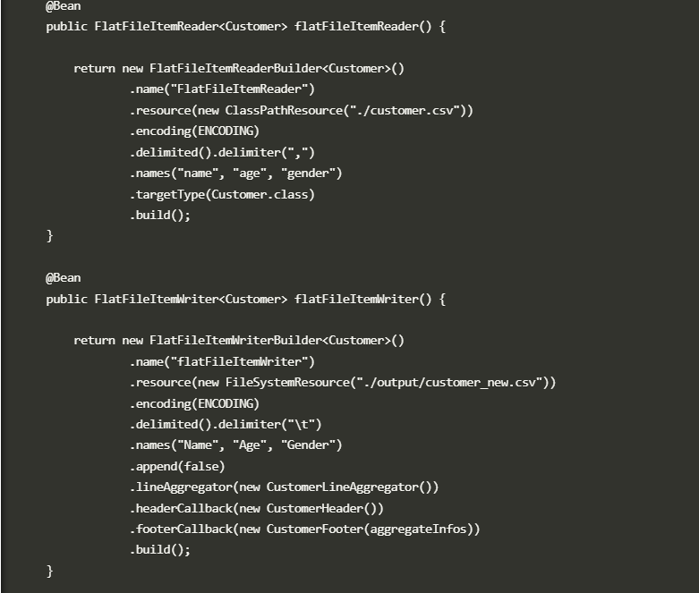 public FlatFileItemWriter<Customer> customerFlatFileItemWriter() {