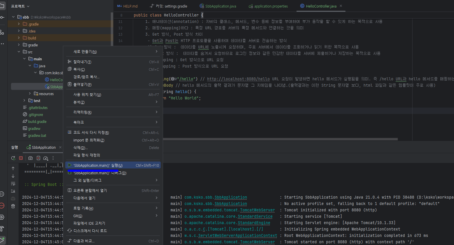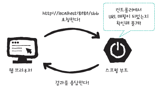 웹 브라우저에서 http://localhost:8080/sbb 페이지를 요청했을 때 '안녕하세요 sbb에 오신 것을 환영합니다.'라는 문자열을 출력하도록 만들어 보자.