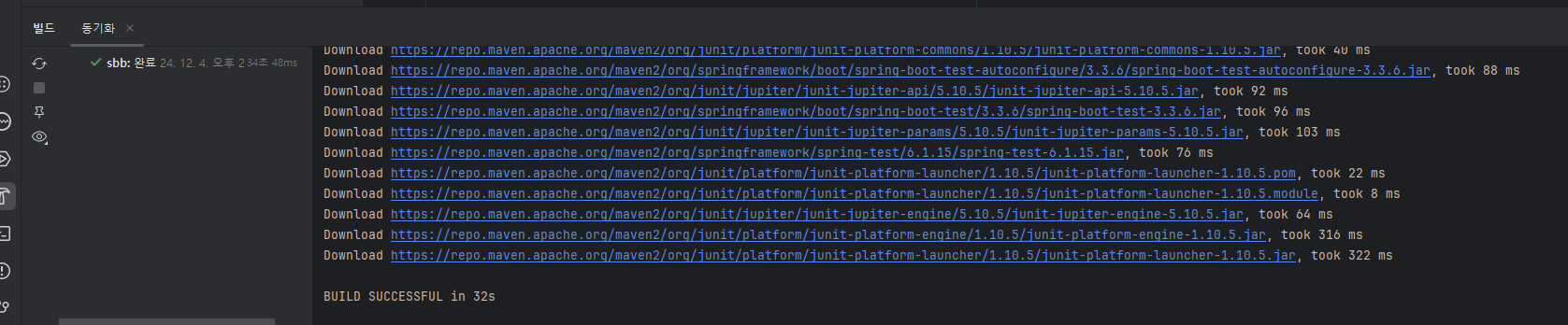 - 빌드 도구 : 소스 코드를 컴파일 하고 필요한 라이브러리를 내려받을 때 사용한다. sbb 프로젝트 완성시 단 한개의 jar 파일로 패키징하여 서버에 배포할 수 있는데 이떄에도 빌드 도구를 사용