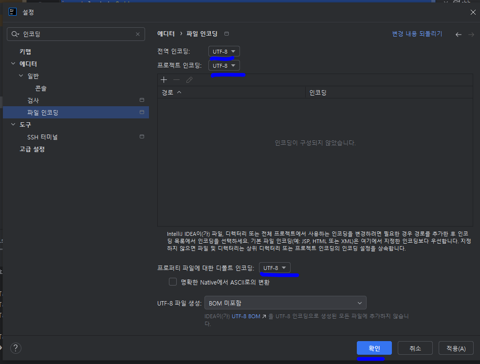 //한글 인코딩 깨짐 현상 확인 및 수정