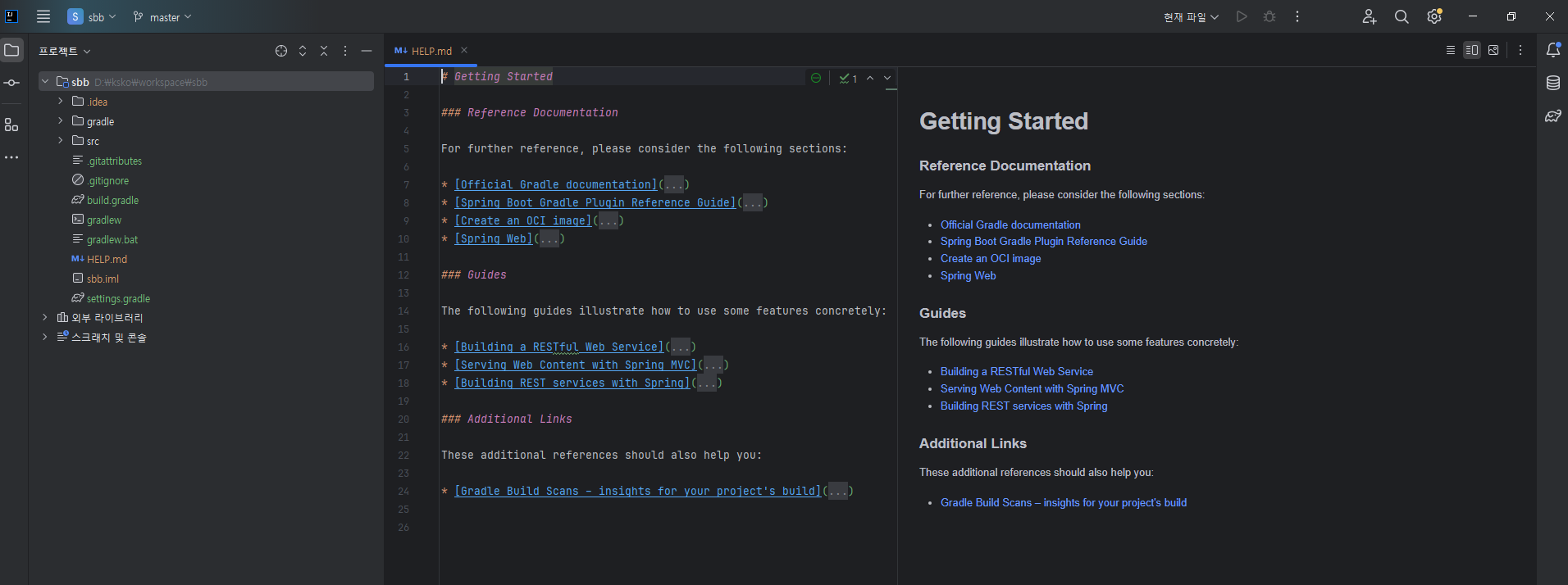 막 뭔가 다운로드 받다가.. 오류 메세지 나서 Gradle 재 빌드를 했더니 아래와 같이 정상 노출되었다